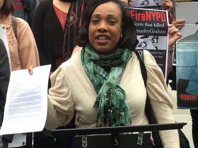One attendee held up a sign with a quote from a New York Times article in February 2012 in which then Public Advocate Bill de Blasio was quoted as saying, “Part of the healing process for the Graham family, and for the city as a whole, derives from a fair, speedy and transparent investigation. That work should begin immediately”—a comment Graham’s mother, Constance Malcolm, and elected officials and advocates in attendance referred to as proof the mayor did not make good on his promise.